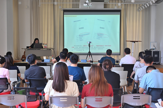 培训会上,市科技信息研究院科技报告与科技查新部的张卓群副研究员和朱延雄高级工程师,对科技报告制度及管理流程、科技报告撰写规范等进行解读并给大家答疑解惑。