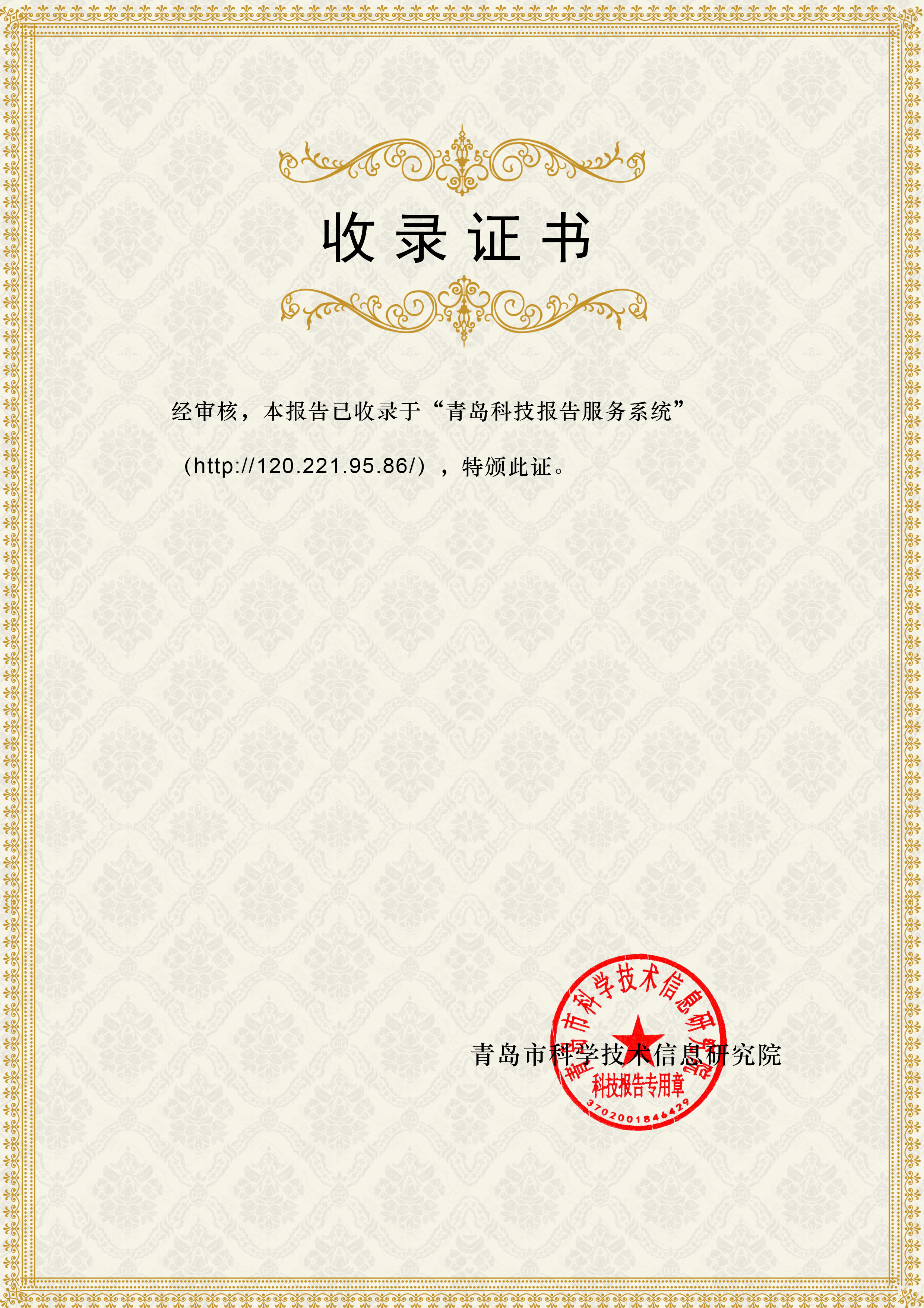 经编辑加工合格的科技报告统一收集、存储于“青岛科技报告服务系统”并公开发布,我们将向已发布的科技报告作者颁发收录证书。